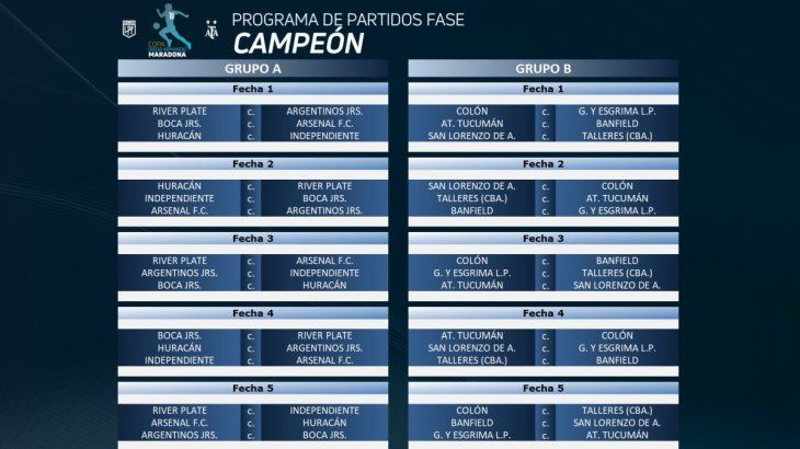 Fixture de la fase Campeón de la Copa Diego Maradona