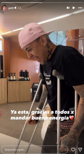 Fiel a su personalidad, incluso en ese contexto volvió a apelar al humor. En el mismo video, utilizó las muletas como si fueran un arma y jugó frente a cámara, restándole dramatismo a la situación. La actitud fue celebrada por sus seguidores, quienes destacaron su optimismo y la manera descontracturada con la que afrontó la recuperación.