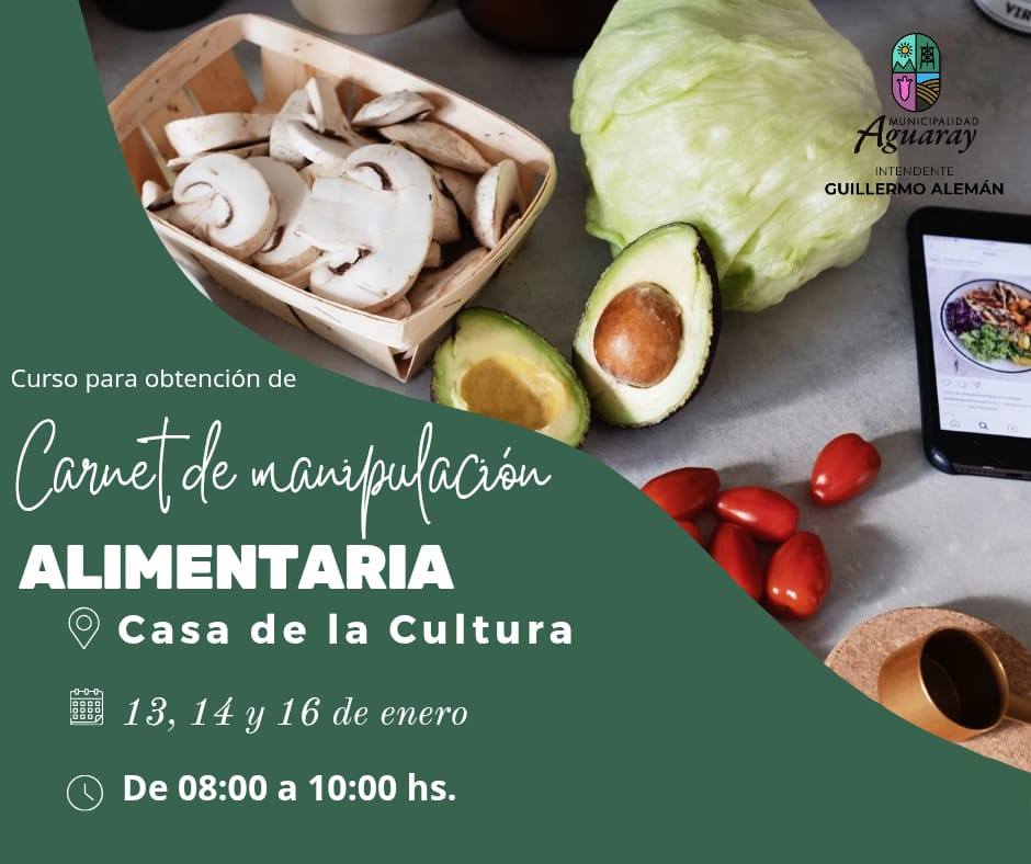 La Dirección de Bromatología de la Municipalidad de Aguaray informa a la comunidad que el martes 13 del corriente mes dará inicio el Curso de Manipulación de Alimentos, una propuesta formativa orientada a promover prácticas seguras e higiénicas en la elaboración, conservación y manejo de alimentos.