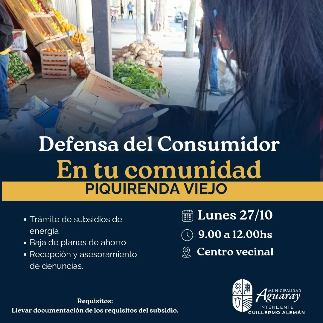 La Municipalidad de Aguaray, a través de su área de Defensa del Consumidor, llevará adelante un nuevo operativo territorial bajo el lema “Defensa del Consumidor en tu Comunidad”, con el objetivo de acercar servicios, asesoramiento y trámites a los vecinos de distintas zonas del municipio.