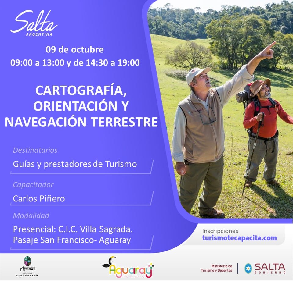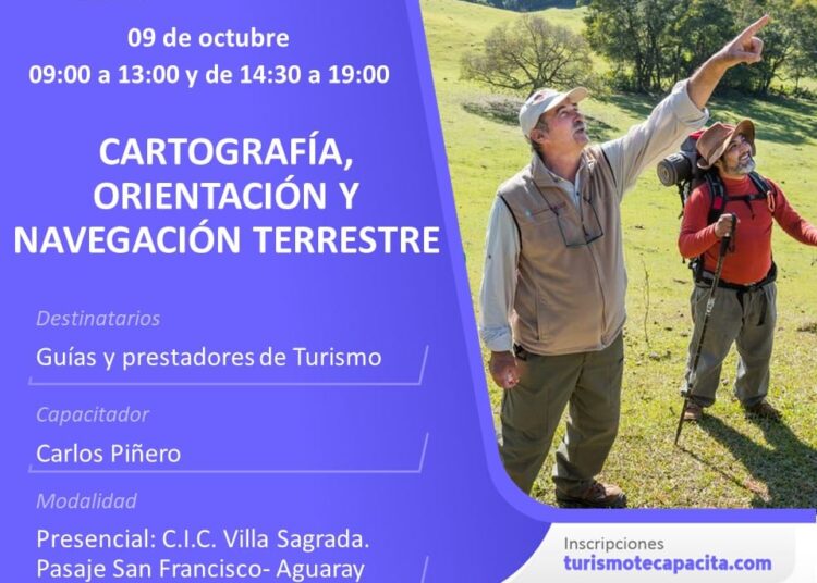 La capacitación, titulada “Cartografía, Orientación y Navegación Terrestre”, se llevará a cabo el próximo jueves 9 de octubre en el Centro Integrador Comunitario (C.I.C.) de Villa Sagrada, ubicado en Pasaje San Francisco, Aguaray. El encuentro se desarrollará en doble turno: por la mañana de 09:00 a 13:00 hs, y por la tarde de 14:30 a 19:00 hs.