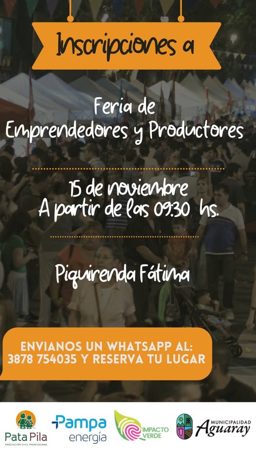 Quienes deseen participar con su stand o emprendimiento aún están a tiempo: pueden comunicarse al WhatsApp 3878 754035 para reservar su lugar y formar parte de esta jornada que promueve el trabajo local y la sustentabilidad.