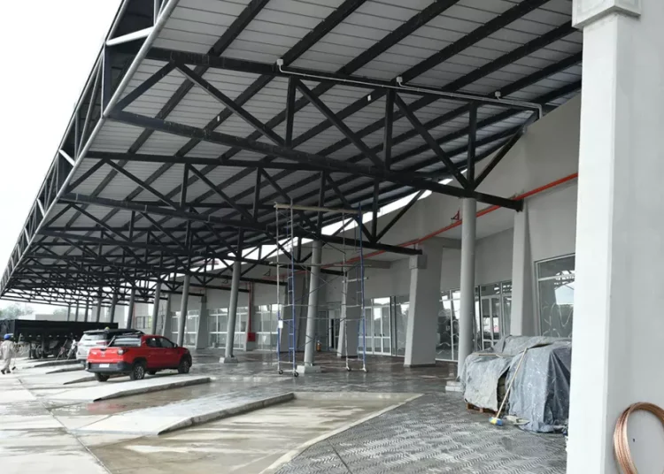 El ministro Camacho explicó que en esta etapa final de la terminal se ejecutan detalles en el edificio, mientras se concluyen tareas paralelas con la pavimentación de calles laterales y otros aspectos de la obra hídrica para la evacuación de las lluvias.