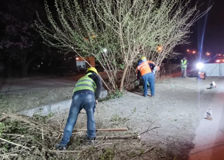 Los trabajos se realizan en horario de 19 a 23 horas, evitando generar ruidos molestos durante el descanso nocturno de los vecinos. Posteriormente, se procede al levantamiento de los restos de poda para mantener la limpieza en los sectores intervenidos.