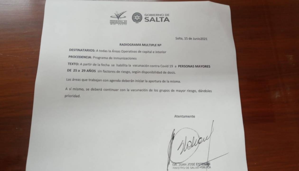 En la habilitación de esta medida, firmada por el ministro de Salud Juan José Esteban, también se detalla que los grupos de riesgo siguen teniendo prioridad.