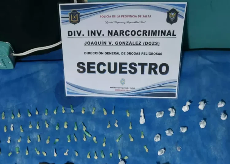 En la mañana de ayer se allanaron cuatro inmuebles en barrio Francisco Arias que funcionaban como bocas de expendio de drogas. Se secuestraron alrededor de 500 dosis de cocaína y marihuana, celulares, dinero, entre otros elementos de interés para la causa. Así, la Policía de Salta desarticuló una banda delictiva dedicada a la comercialización de droga, operaba en Joaquín V. González. La investigación inició por una denuncia ciudadana al sitio de Denuncias Web. En ese marco 3 personas, miembros de una misma familia, fueron detenidas y puestas a disposición de la Justicia. Trabajó en el caso la División Investigación Narcocriminal con efectivos del Distrito de Prevención 5 bajo la dirección de la Fiscalía Penal local y el Juzgado de Garantías 1.
