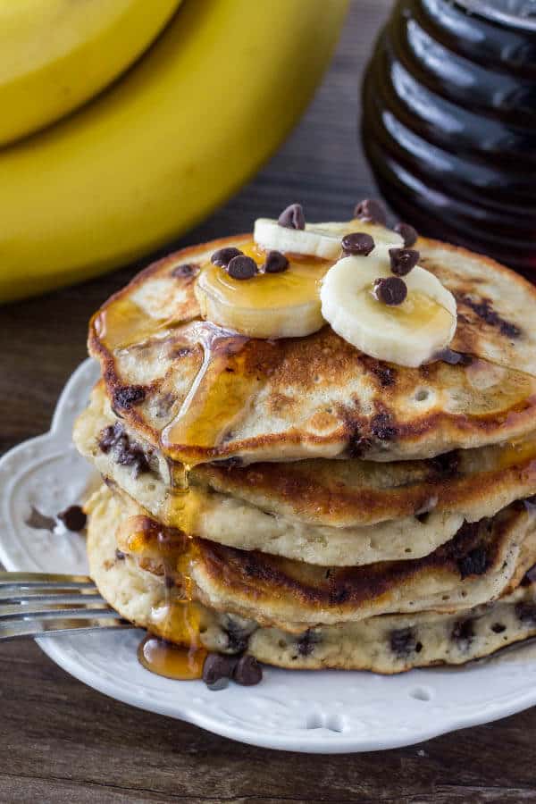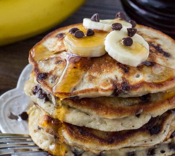 Servir los pancakes recién hechos en un plato, acompañados con miel, frutas frescas, nueces o lo que prefieras. Son suaves, dulces y perfectos para un desayuno nutritivo y reconfortante.