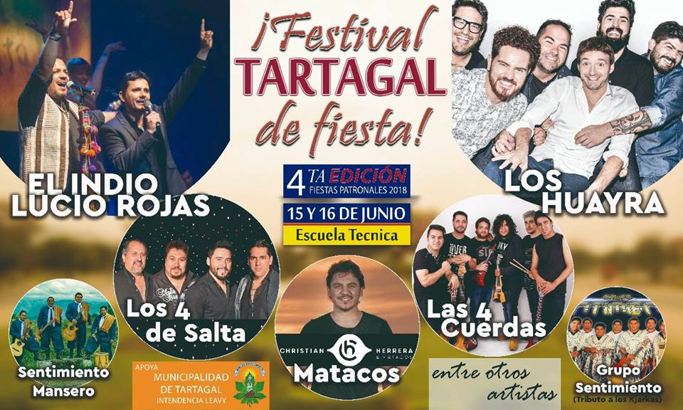 Tartagal se prepara para un nuevo aniversario con una propuesta de dos noches a puro folclore. Los días 15 y 16 de Junio, se realizará el Festival «Tartagal de Fiesta» 2018 con la participación de grandes voces, como la del Indio Rojas, Los huayras, Los 4 de Salta, matacos, entre otros.